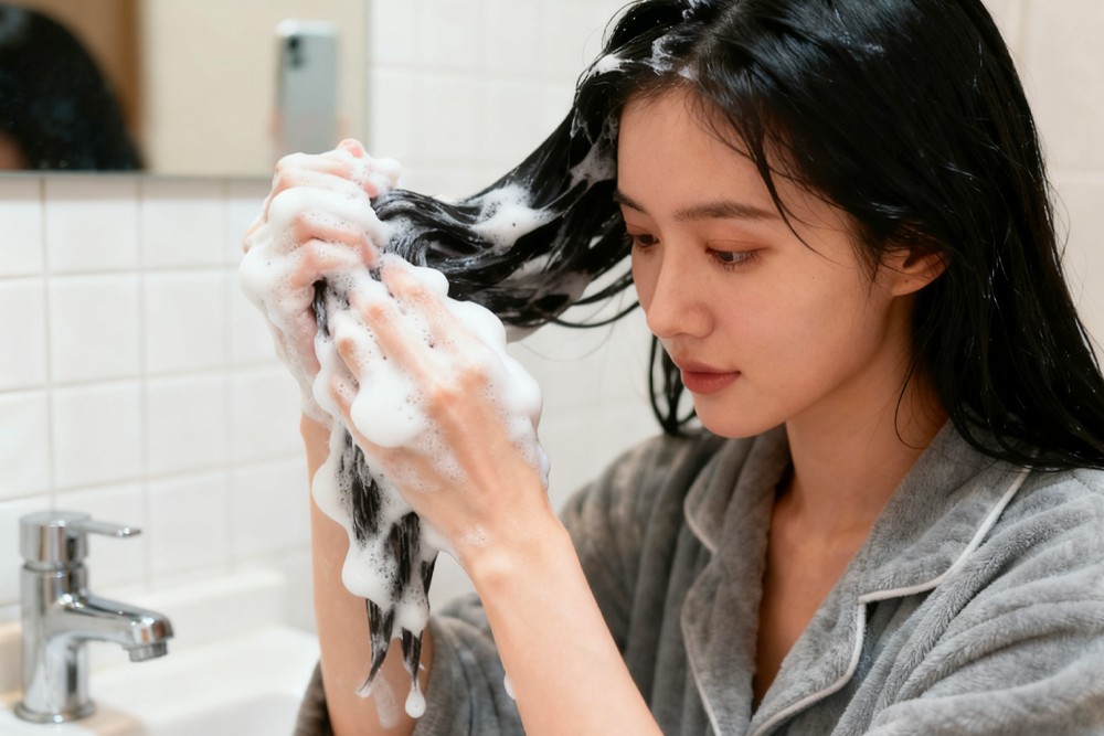 洗髮時,切勿將洗髮精直接倒在頭皮上。正確做法是:先在掌心加水,將洗髮精充分搓揉起泡,再將豐富的泡沫抹上頭皮。這樣能大幅降低濃度帶來的刺激,讓泡沫均勻吸附髒污,溫和且高效。
