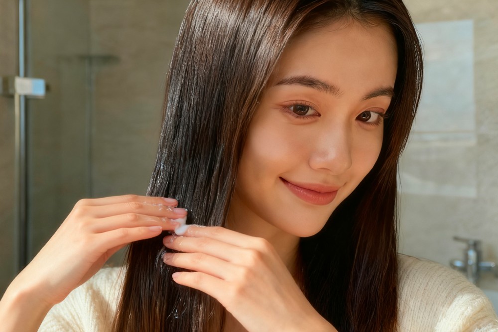 反向洗頭法的核心,是在乾髮狀態下先護髮。此時毛鱗片仍緊閉,護髮成分更容易停留在髮絲外層,形成保護膜。