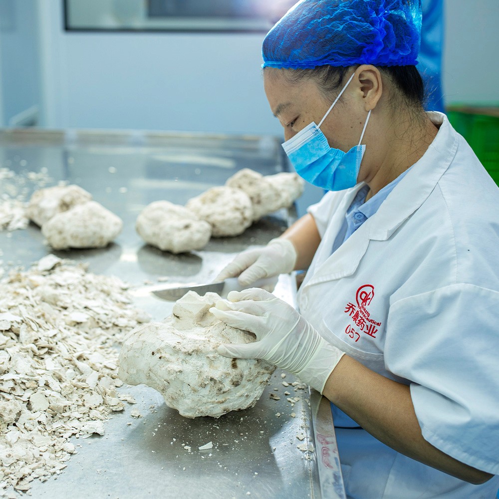 • 統一採收加工:以藥材生長週期與最佳成熟時機進行採收,如茯苓堅持三年採收,保留其最高藥效。